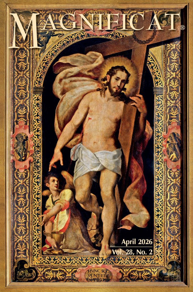 The work that adorns the cover of this issue of Magnificat was not painted on canvas, nor on a wood panel, nor as a fresco, but rather on a panel of leather. It is in fact a banner produced by Tinti for the processions of the Confraternity of the Five Wounds. This confraternity undertook as its charitable task to help the poor facing death by assuring them of a decent burial, but also by coming to the aid of the survivors, who often, at the death of a father or a mother, or a husband, were in danger of sinking from poverty into destitution. This confraternity continued to flourish into the 20th century but was dissolved by military force in 1911 by an anticlerical Italian government.